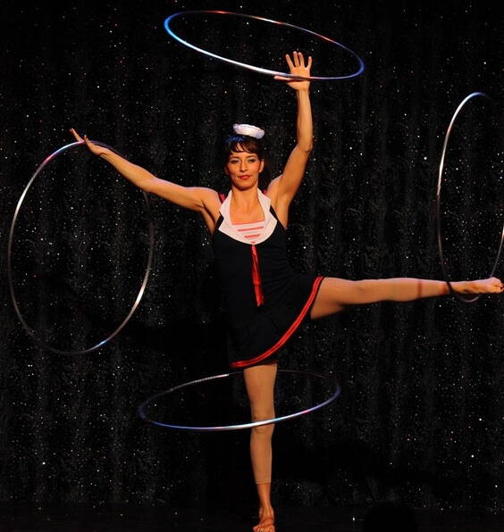 die Frau mit den Reifen Die akrobatische Show eignet sich für jeden Anlass und kann auf praktisch jeder Bühne stattfinden. Hochstehende Artistik mit über 20 Hula Hoops. Dauer ca. 6 Minuten.